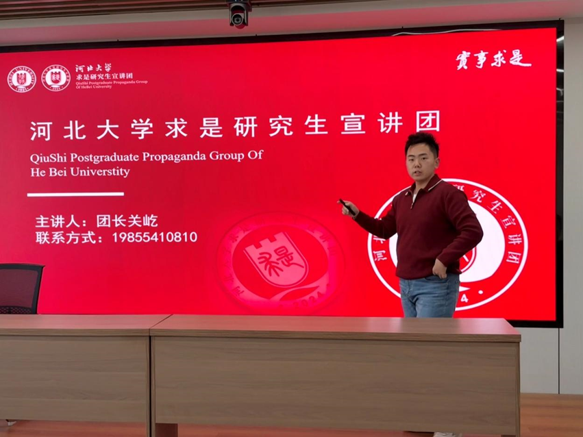“求是”研究生宣讲团团长关屹对宣讲团进行介绍,讲述了这支2024年5月成立的青年队伍,用“青年化阐释+元素化解码”,把党的创新理论、燕赵文脉、校史荣光和专业干货,变成了200余场“有温度、有共鸣”的宣讲。