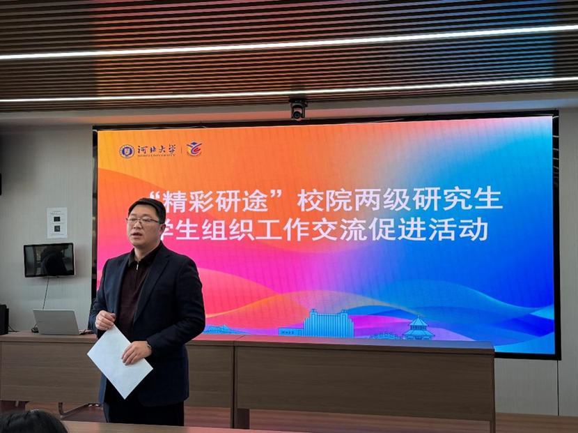为深化校院研究生组织联动协作,提升服务研究生成长的精准效能,2025年11月18日,河北大学研究生学术文化节系列活动之“精彩研途”校院两级研究生学生组织工作交流促进活动,在哲学与社会学学院B1六楼学术报告厅成功举办。哲学与社会学学院党委副书记王昭出席指导,河北大学研究生会代表及哲社学院骨干学生代表共同参加。