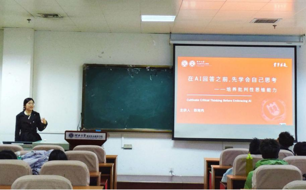 “求是” 研究生宣讲团成员陈宵冉以《AI 回答之前 先学会自己思考 — 培养批判性思维》为主题开展宣讲。结合当下 AI 技术广泛应用的背景,围绕批判性思维的核心内涵展开分享,强调了在信息爆炸时代,研究生培养独立思考、审慎判断能力的重要性。她从学术研究的实际需求出发,引导在场研究生思考如何在日常学习与科研中保持独立判断,不盲从既有结论、不依赖单一信息来源,学会对各类观点、数据和结论进行理性分析与审慎甄别。宣讲内容紧扣研究生学术成长需求,为大家在学术研究中突破思维定式、提升思考深度提供了有益启发。