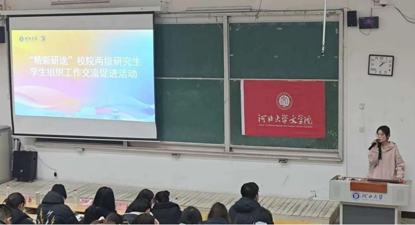 为强化校院两级研究生的理论武装与使命担当、引导广大同学在回望党史中坚定政治自觉,11月21日下午,河北大学校研究生会代表和文学院骨干代表,共同举办“精彩研途”校院两级研究生学生组织工作交流促进活动。