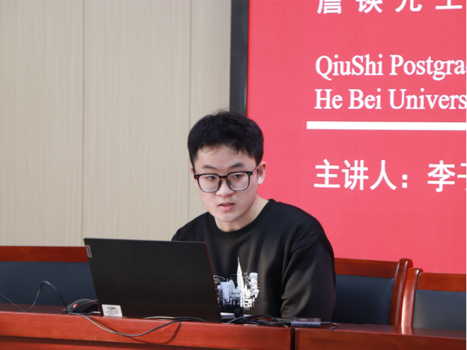 活动伊始,“求是”研究生宣讲团讲师李子昊带来了题为《探赜钩深•中西会通•薪火永续:詹锳先生的治学精神与学术遗产》的精彩宣讲。他用生动的语言,向我们介绍了詹锳先生早期求学经历与学术成果,治学方法、学术遗产,爱国精神等内容。宣讲中,李子昊重点拆解了詹锳先生 “中西会通、古今交融” 的治学方法:既强调对传统训诂、考据之学的敬畏与坚守,从典籍原文中探寻学术本源;又倡导以现代学术视野审视古典文学,将西方文艺理论与中国传统文论相结合,形成独树一帜的研究范式。