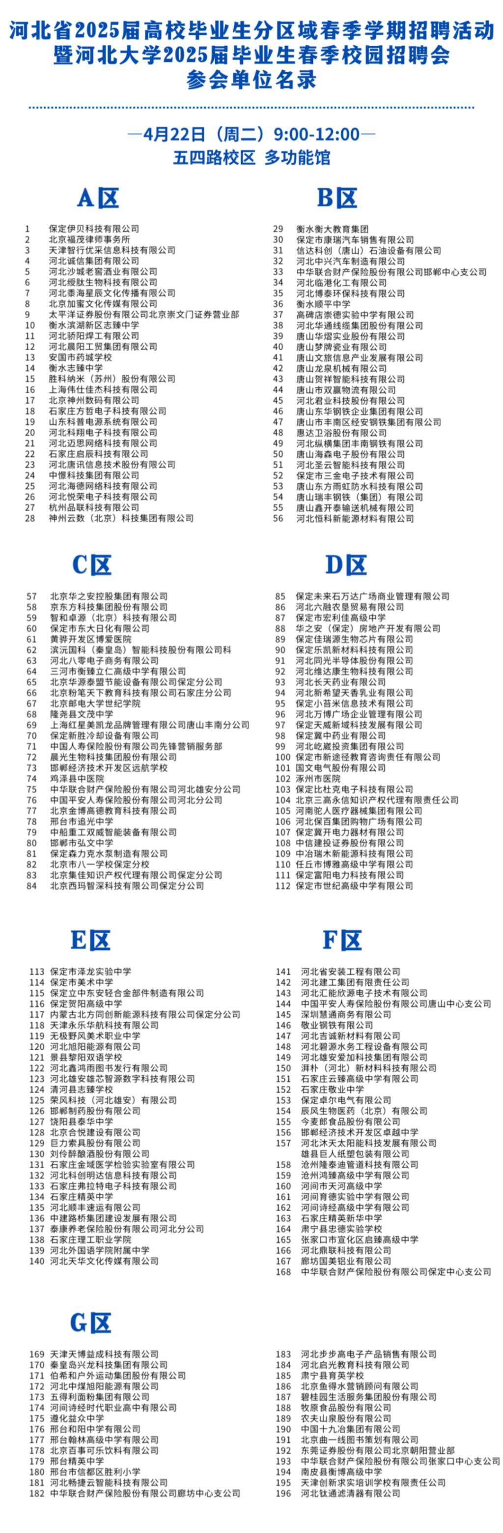 河北省2025届高校毕业生分区域春季学期招聘活动暨河北大学2025届毕业生春季校园招聘会参会单位及岗位信息.xlsx
