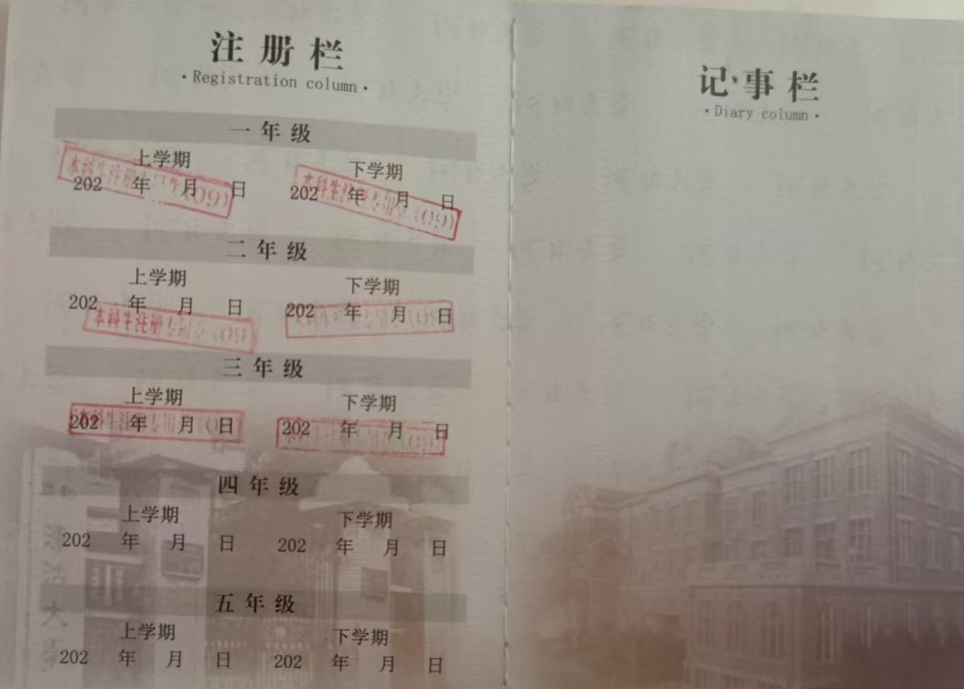 上传学生证基本信息页、注册页,如图所示,确保所有信息清晰完整,不得遮挡。
